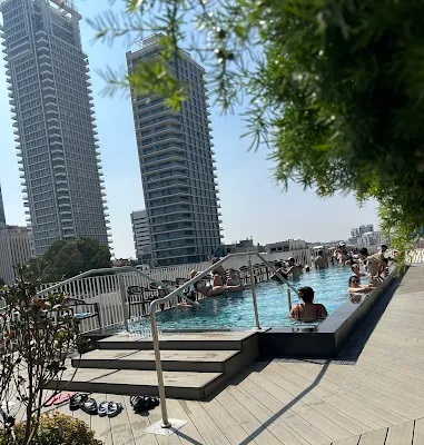 » בריכה שחייה הממוקמת על הגג (בעונה), עם מיטות השיזוף |